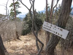 赤雪山〜仙人ヶ岳間を歩くのは2000年2月の山行以来になる。歩く人が増えたのか、道も良く踏まれていて歩きやすくなった気がする。小さなアップダウンや露岩のピークがあって、変化のあるコースだ。「松田川ダム/野山林道へ20分」という標識を過ぎて急坂を登ると、仙人ヶ岳の頂稜の一角に着いた。