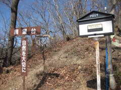 森山展望台に着くと、桐生市街の眺めが開ける。木に掛けられた小さなプレートは掠れて、「楚巒山楽会」の文字だけが読み取れた。一色展望台では、桐生市街がさらに近づいて良く見える。ここのポストにあるノートに記帳しようと思ったら、書き込みで一杯になっていたので、裏表紙の裏に書く。ページを繰ると、「ハイトスの里山日記」のHitosさんや、菱町在住でブログをやっている方の記帳を見つけた。