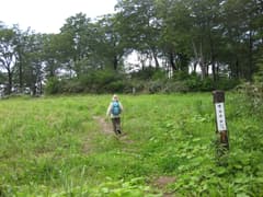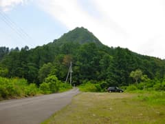 西側から登るのは難しそうなので、次は東側からトライ。松之山湯本から湯峠に上がり、大松山(おおまつやま)への未舗装林道に入る。途中で大松山大池の方へ左折すべきところを直進してしまい、大松山の頂上直下まで車で上がってしまう。ついでなので、大松山にも立ち寄ってみますか。広い駐車スペースに車を置いて、ペットボトルとデジカメだけを持って歩く。