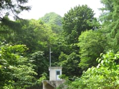 樹林の中を登ると配水場?があり、山伏山の頂上が仰がれる。急峻で登りがちょっと大変そうに見えるが、登山道は大きくジグザグを切って付けられており、急坂はない。まさに、キャンプの際の軽いハイキングにぴったし。
