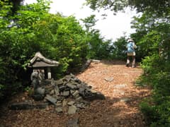 といっても頂上までは2分とかからない。頂上は広く開けて、一段高い所に石祠と「中村先生頌徳(しょうとく)碑」という石碑が建つ。