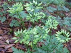 最初は林道を歩き、林道終点からはブナ林の中の踏み跡を登る。根曲がりのブナが積雪の多さを物語る。実をつけた草はなんでしょう?(ご教示頂きました。セリバオウレンのようです。)