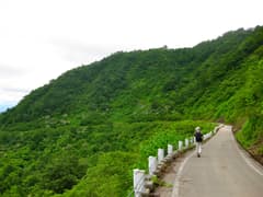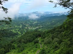 R405はこのあたりによくある、国道とは思えないほど狭くて曲がりくねった国道だ。少し下った場所には、これもこのあたりの見所の棚田の一つがあり、藁葺き屋根の小屋がいい被写体になっていて、ドライブ途中の観光客がカメラを構えていた。