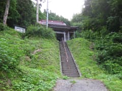 源泉湯やぐらのすぐ上には、奇祭「むこ投げ」で有名な薬師堂があり、むこが投げ落とされる階段を見学した。