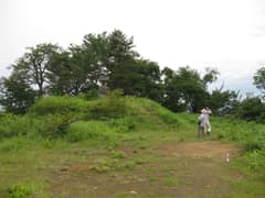 麓には風穴という標識があり、見てみると石垣に囲まれた四角い窪地があり、その底に雪が残っている。石段を降りて中に入ると、冷気が溜まっていてとても涼し〜い。涼しくて気持ち良く、蒸し暑い外に出るのが嫌になるくらいだ。石垣の隙間から冷風が吹き出ているため、雪が残っているらしい。この風穴はなかなかの推奨ポイント。