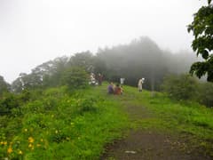 頂上のニッコウキスゲを鑑賞したのち、同じ道を下る。途中の草原ではガスが上がって、みかぼ高原荘が眺められた。下からはどんどんハイカーさんが登って来て、頂上は益々の賑わいになりそうだ。駐車場に戻ると車の数も増えていた。