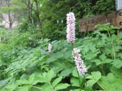 送電鉄塔のところには、伺ったとおり、早滝への登山道を覆い隠すようにイブキトラノオが咲いていた。周囲にはキフリツネやシモツケなどの花もある。