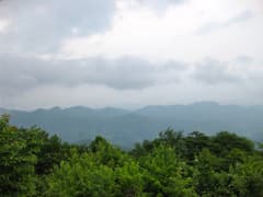 帰りの林道の脇に「山の神の丘150m 展望台20m」という道標を見つける。20mならば行ってみよう(^^)ということで、車を停めてちょっと道草。デジカメだけを携えて山道に入ると、すぐに展望が開けた斜面があり、東屋が建っている。