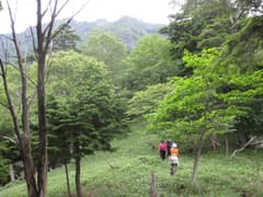 庚申山荘にちょっと寄ってみる。1992年に初めて皇海山に登ったときは、ここに一泊したので(六林班峠経由で皇海山へ往復した)、とても懐かしい。山荘の管理人さん(週末だけ駐在)の話によると、コウシンソウの時期には定員を越える宿泊者が押し寄せたそうだが、昨夜はゼロだったそうだ。餅ヶ瀬在住の方で、この山域の本を執筆する際に餅ヶ瀬を綿密に取材しているMさんと共通の知人が多いらしく、話が弾んで端で聞いていても興味深かった。なお、山荘のバイオトイレは、利用者が流した異物が原因で故障中とのこと(修理には相当費用がかかるらしい)。