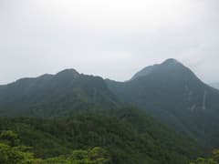 ここから庚申山の山頂を目指す。山頂への道も岩場が多くてなかなか急だ。途中で腹が減ってシャリばてしかかったので、大休止して昼食にする。ポツポツと雨粒が落ちて来たが、本降りにはならない。ここで若者グループに追い付かれて、頂上まで相前後する。