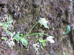 急な登りが一段落した辺りで、頂上付近で唯一コウシンソウが咲くという岩場をMさんに教わる。運が良いことに数個の花が咲き残っていた。若者グループにも咲いているよと教えてあげたが、小さい花だからどんな感想をもったかな。