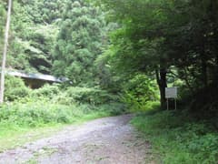 未舗装の林道を辿ると、赤柴の集落跡に着く。無住の建物が草藪に埋もれて不気味だ。元は住居ではなく、何かの集会所のような感じがする。