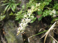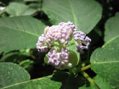 頂上直下の岩場を下るとき、ようやく目新しい花を見つけた。帰ってから調べるとノギランというらしい。初めて見る花なので、ちょっと嬉しい。肩の広場から駒形コースを下る。降り始めではヤマアジサイ、下の方ではタマアジサイがたくさん咲いていた。