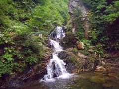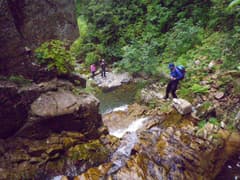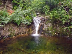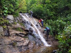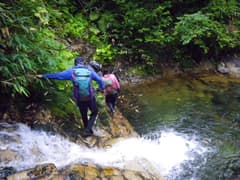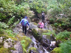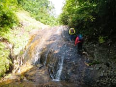 ところどころ小滝があるが、容易に下れる。ナメやナメ滝が続き、深い森林を流れ落ちる美しい渓谷だ。楽しい下りだが、水の中の石は滑り易いので気を使う。