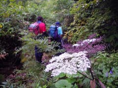 Mさん夫妻を車に乗せて、桐生を4時に出発。追貝でHさんと合流し、私の車に乗り換えて笠科川上流に向かう。戸倉の駐車場は、シーズン中ならば鳩待峠へのバスに乗り換える車でいっぱいになるが、夏山と紅葉の端境期の今日は空いているようだ。