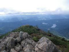 笠ヶ岳のピークを巻いて湯ノ小屋と頂上の分岐に着くと、西からの風が物凄い。強風に煽られてよろよろと急坂を登り、先週に続いての笠ヶ岳の頂上に到着した。頂上からは相変わらず360度の展望が得られるが、Tシャツで過ごした前回から一週間しか経っていないのに気候は様変わり。長袖シャツにフリース、上ゴアを着込んで丁度良い。岩陰で風を避けて、昼食にパンを齧る。