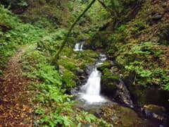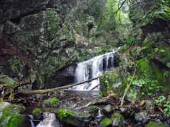 次は「仙の滝」という標識に導かれて、登山道から僅かに渓谷に降りると、優美に流れ落ちる滝が見おろせる。落っこちないように注意しながら覗き込む。