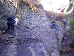 一不動から下ると氷清水の水場があり、冷たい水をたっぷり飲む。そのすぐ下に帯岩と滑滝の鎖場があるが、蟻の塔渡りに較べれば楽勝。あとはキノコでも探しながら、のんびり下るだけだ。