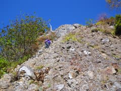先行していたツアー登山一行に追い付いたと思ったら、鎖場で順番待ちとなっていた。ここはスタンスが大きいので、鎖でバランスを取る程度で楽に登れる。