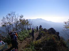 蟻の塔渡りを越えれば、あとは難しい所はない。振り返ると、蟻の塔渡りの上を後続のハイカーさんが続々と渡っている。まさに蟻の群れのようだ。小さな岩場を鎖で越えると、八方睨の頂上に着いた。