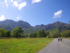 秋の味覚をたくさん採集して、戸隠牧場に降りた。牧場には乳牛や馬が放牧され、観光客がソフトクリームを嘗めながら戸隠連峰の雄大な景観を楽しんでいる。戸隠キャンプ場から「さかさ川歩道」を辿って、奥社入口の駐車場に戻った。