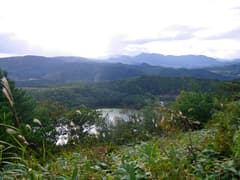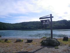 湖畔に掲げられた説明板によると、潟沼は鳴子火山の火口湖で、837年にこの地方で起きた火山活動が続日本後記に書かれていることから、約1100年前に出現したと考えられているそうだ。世界でも有数の強酸性の水質のために魚は棲めず、セスジユスリカだけが棲息しているという。実際、夥しいユスリカが煙がたなびくごとく集って来て、血は吸わないけれど鬱陶しいことこの上ない。湖畔のクレー射撃場から連続して響く発砲音もちょっと気に障る。しかし、そんなことも含めて、実にユニークで興味深い湖だ。