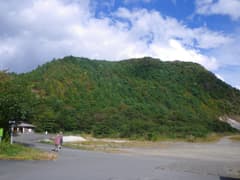 今日の山歩きは、鬼首カルデラの中央に鎮座する荒雄岳に八ッ森コースを往復して登る。車で吹上高原キャンプ場から観光道路を上がる。途中、雌釜・雄釜の間歇泉へ道が分かれるが、現在は全く噴出していないらしい。