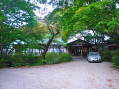 峯雲閣は観光客で賑わう間歇泉から少し奥まった谷間にあり、森に囲まれた閑静な一軒宿だ。玄関に入ると、赤絨毯、黒光りのする太い柱、高い天井のロビーがあり、年代を感じさせる。
