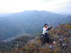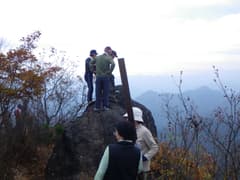 一ノ岳頂上からの展望は、遠くは霞んでいるが西上州一円が見えて素晴らしい。休憩時間が十分あるので、頂上から一段下がった南端の岩場の絶景ポイントにつれづれさんをお誘いして行く。