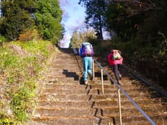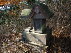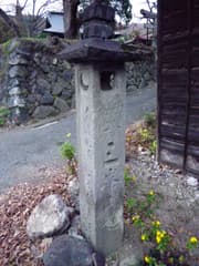 すっかり石仏、祠の類に興味を持った一行。最奥の民家に出て、道端に石祠や記念碑?、庚申塔を見つけると、逐一じっくり見て回る(^^)。このあたりから枝尾根(大黒尾根)を辿って三峰山に登る参道が、かつてあったらしい。
