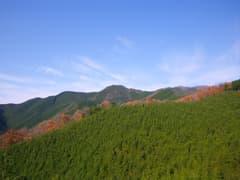 やがて、『野山歩きのヒント』では刈払地と書かれている場所に出る。現在はヒノキの植林地になっていて休憩にはもう適さないが、まだ植林が育っていないので、三峰山から大形山にかけての主稜線の眺めが良い。