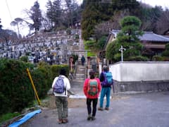 光明寺の墓地を左手に見て参道の階段を登っていくと、途中に千手観音がある。今日のコースを企画した代表幹事代行さんは、今日見る予定の石仏の資料(桐生タイムスに連載された「桐生の石仏」のコピー)を持参していて、それを見させて頂くと、千手観音の持ち物の中には髑髏があるそうな。ええっ、