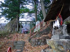 境内の山側の急な斜面には、三十六童子の文字塔(数えてないが多分全部ある)や不動明王、御嶽三座神、霊神碑など、夥しい数の石碑・石像があり、御嶽講の往時の隆盛を偲ばせる。