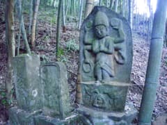 山門の中には、かつての温泉の源泉井戸があり、淀んだ泥水が溜まっている。底は見えない。長さ2mくらいの木の枝を差し込んだら、ずぶずぶと沈んで行った。ホラー映画「リング」に登場する、貞子が沈められた井戸みたいだ。などと代行さんに話したら、代行さんが動揺して階段で転び、デジカメが壊れてしまった。社殿の右手には青面金剛像がある。この像の足元には、二羽の鶏に頭を突かれている見ざる一匹が彫られている。