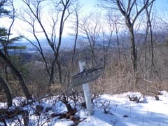 稜線を緩く辿って、森山展望台に着く。すみれ山好会の立派な道標は健在だが、展望の方は成長した雑木の梢が邪魔になり、見えにくくなりつつある。