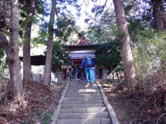 駐車場から長い石段を登って、虚空蔵尊(戸神神社)にお参りする。今日の夕方からお祭りだそうで、地元の方7、8人が準備のために忙しそうに動いていた。石段を少し戻り、左手の林道を辿る。しばらく歩くと道標があり、山道に入る。小さな男の子を背負い紐で背負ったおじいさんが先行する。なかなかの健脚だ。一方、ダブルストックで登るMさんは、傾いた面に足を置くのがまだちょっと辛そう。この辺りの斜面に掘った跡が見えるのは戸神鉱山といい、昭和13年頃から終戦までの間に主として金を採掘していた跡らしい。