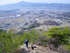 登山道はやがて岩場にさしかかり、小気味良く高度を上げて行く。振り返ると眼下に利根川の河岸段丘が広がり、その向こうに子持山や小野子三山が見える。良く晴れて、暑いくらいの陽気だ。