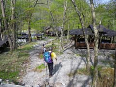 道標まで戻り、後は素直に歩道を辿って、好天の休日で家族連れやBBQのグループが三々五々訪れている利平茶屋に着く。そこから車道を歩き、車を置いた二の鳥居に向かった。