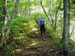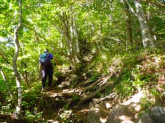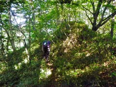 あまり歩かれている雰囲気はないが、稜線に沿って確かに踏み跡が続いている。馬の背という痩せ尾根の地点まで行ってみたかったが、今回は偵察なので、その手前で引き返す。この稜線は意外と深山の雰囲気がある。紅葉の時期に、この峠道を山麓から大沼へ越えるのも面白そうだ(「群馬300山」にコースの記載がある)。