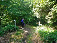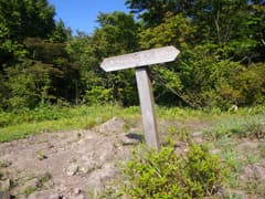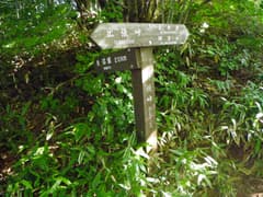 薬師岳の頂上から少し進むと野坂峠の道標があり、北に向かって「沼田20km」の表記がある。Mさんがこの峠道に興味を持っているそうなので、寄り道して少し峠道を辿ってみる。