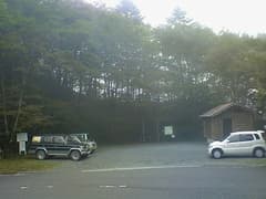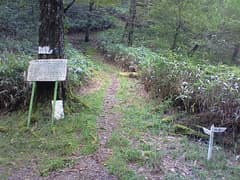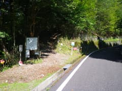 安倍峠の左手すぐ上に車道が通り、八紘嶺への登路は車道を梅ヶ島温泉の方に少し戻る。駐車スペースとWCがある場所が新しい安倍峠で、数台の車があった。相変わらずガスに覆われて、周囲の展望はほとんどない。