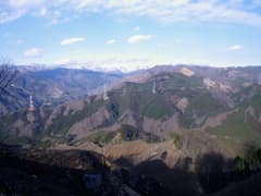 北側に開けた大展望を楽しみながら、尾根を下る。尾根の末端は、地形図では等高線が込み合っているので心配していたら、案の定、ほとんど崖になっている。左の谷に下ったが、降りてから振り返ると、よく降りたなあという急斜面だった。谷には荒れた作業道が通じ、上流が何かの工事で伐採されていて、白浜山の頂上が見通せた。