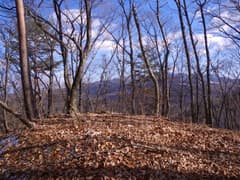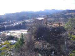 急坂を登ると、奥にもう一段の急登があり、巣立山の頂上に登り着いた。頂上は冬枯れの樹林に囲まれ、木の間を透かして榛名山が見える。三角点の標石と小型山名標の他は静けさだけがある頂上だ。写真数枚を撮って、すぐに引き返す。