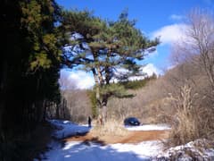 枯れ草色の山野に分け入って、一本松に到着。松を中心に林道がロータリーになっており、駐車スペースには事欠かない。