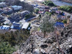 仙人窟と一帯の岩壁、岩峰は、想像していたよりずっと規模が大きく、一見の価値あり。お勧めのスポットだ。入口に戻って案内看板をよく読んでみると、気になることが書いてあった。曰く、仙人窟の山頂には獅子窟があるが、径が険しく、土地の人でも所在が知られていない、とのこと。これは興味を惹かれる。