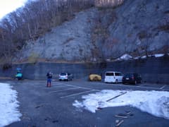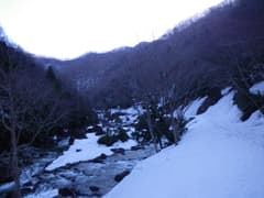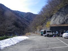 桐生を4時に車で発ち、北関東道、関越道を経由して、水上ICで高速を降りるところまでは先週と同じ。今日もドピーカン間違いなしの好天だ。宝川温泉を過ぎた少し先に広い駐車場があり、その先は未舗装の悪路なので、ここに車を置く。既に2台の車が停まっているのは、登山者か釣り師だろうか。駐車場は除雪されて、片隅に雪が残っている。周囲の山肌には残雪が多い。