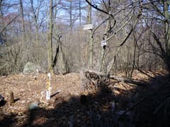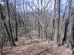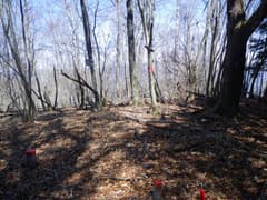 稜線の左側は浅く緩い谷で、園地のような佇まいが好ましい。ピークとまで言えない小さな高みに登ると、そこが小夜戸山の頂上だった。日溜まりに乾いた落ち葉が散り敷いて、昼寝にもってこいの頂きだが、真ん中をTVの共同アンテナが占領しているのは頂けない。