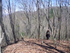 駐車地点から微かな踏み跡を辿って急な斜面を登ると、あっと言う間に丸山の頂上に着く。今日の行程はここから十二時山、鹿生峠、小夜戸山、小夜戸峠を経由して小友までほぼ下り一方という超お気楽コースだ。