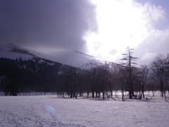 あとは、尾瀬ヶ原の雪原に出て至仏山や燧ヶ岳を眺めたり、テントの中でウィスキーをちびちびなめたりして、のんびり過ごす。雪が多い上に曇っていて肌寒く、春近しという雰囲気はない。明日の天気は大丈夫だろうか。