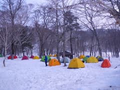 山ノ鼻キャンプ場に到着すると、既に沢山のテントがあった。昨年は特に場所の指定がなかったが、今年はテントを設営できる範囲がロープで区切られているため、テント密度が少し高い。まあそれでも問題はなく、端っこの良い位置にテントを張ることができた。